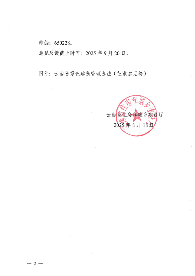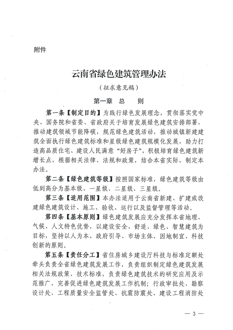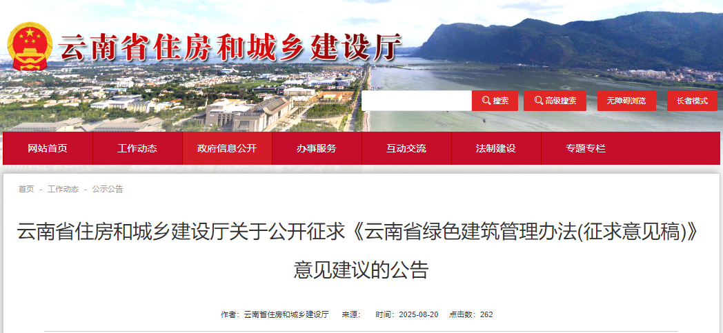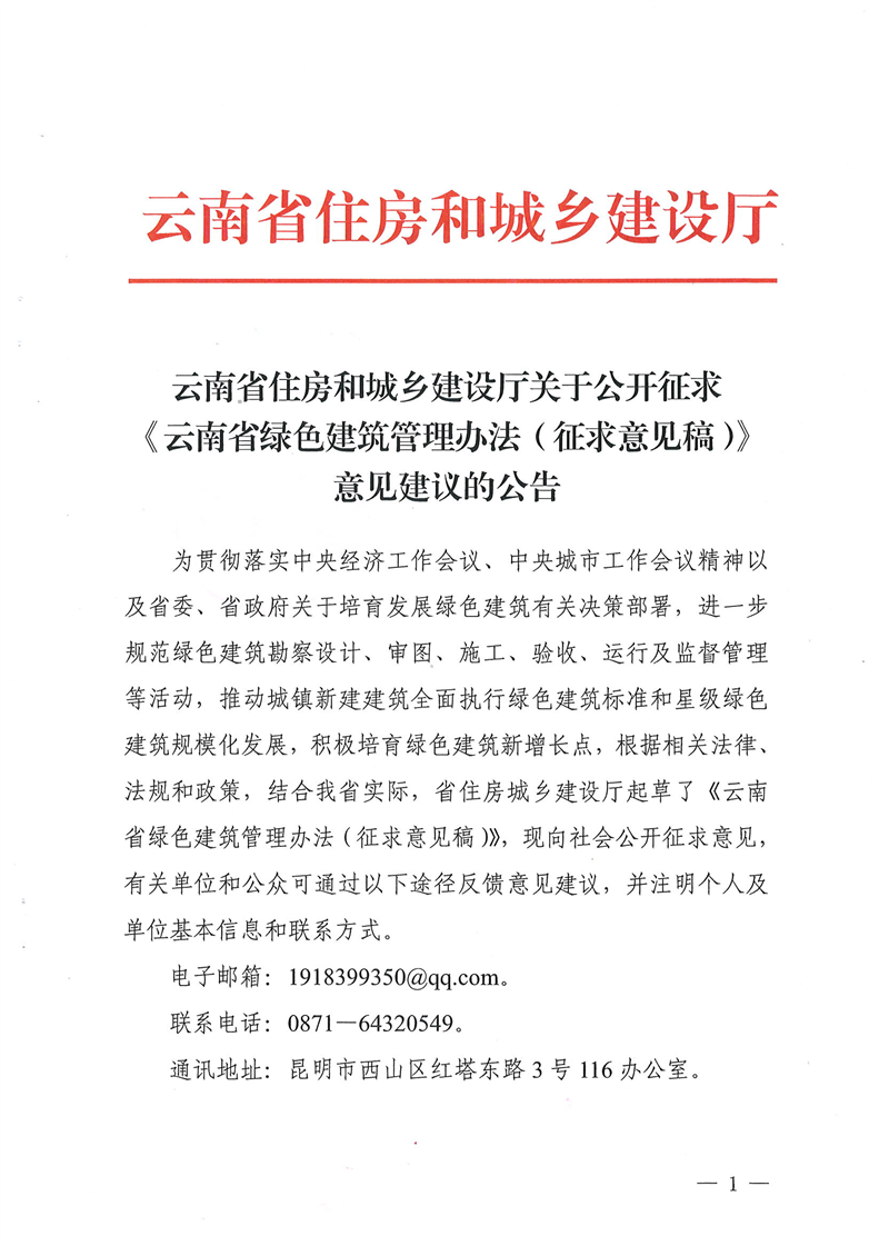 云南省住房和城乡建设厅关于公开征求《云南省绿色建筑管理办法(征求意见稿)》意见建议的公告