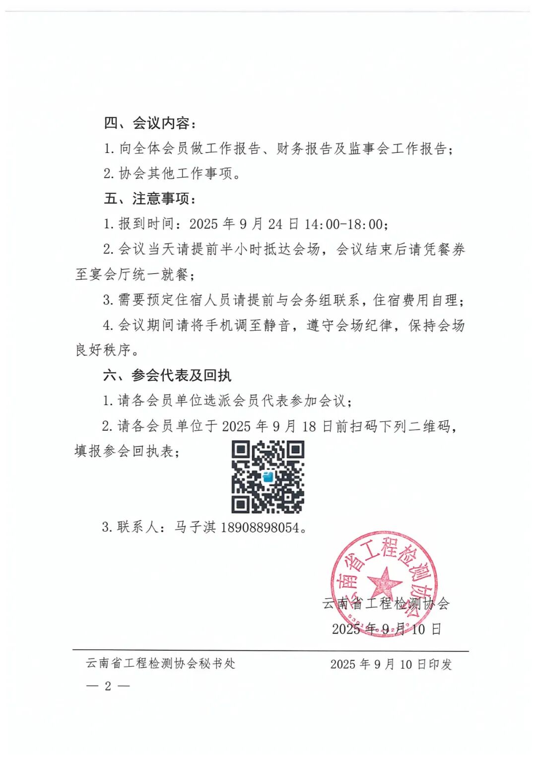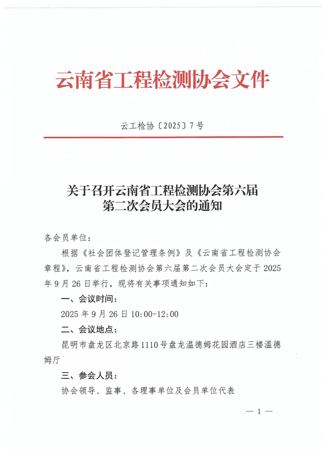 关于召开云南省工程检测协会第六届第二次会员大会的通知