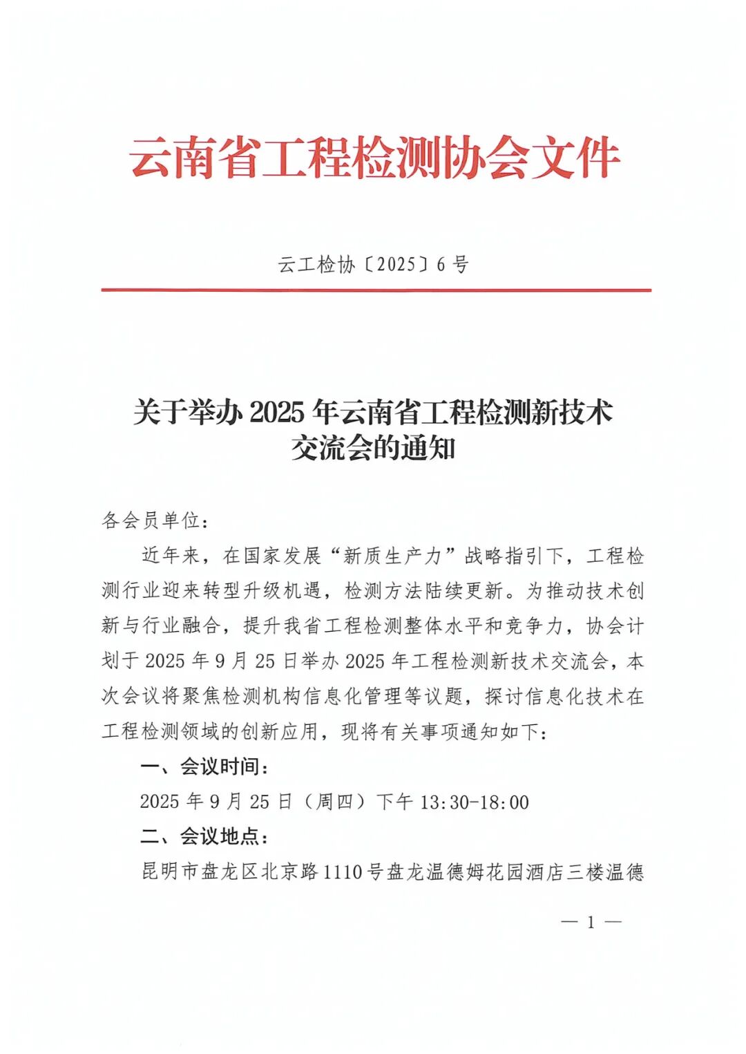 关于举办2025年云南省工程检测新技术交流会的通知