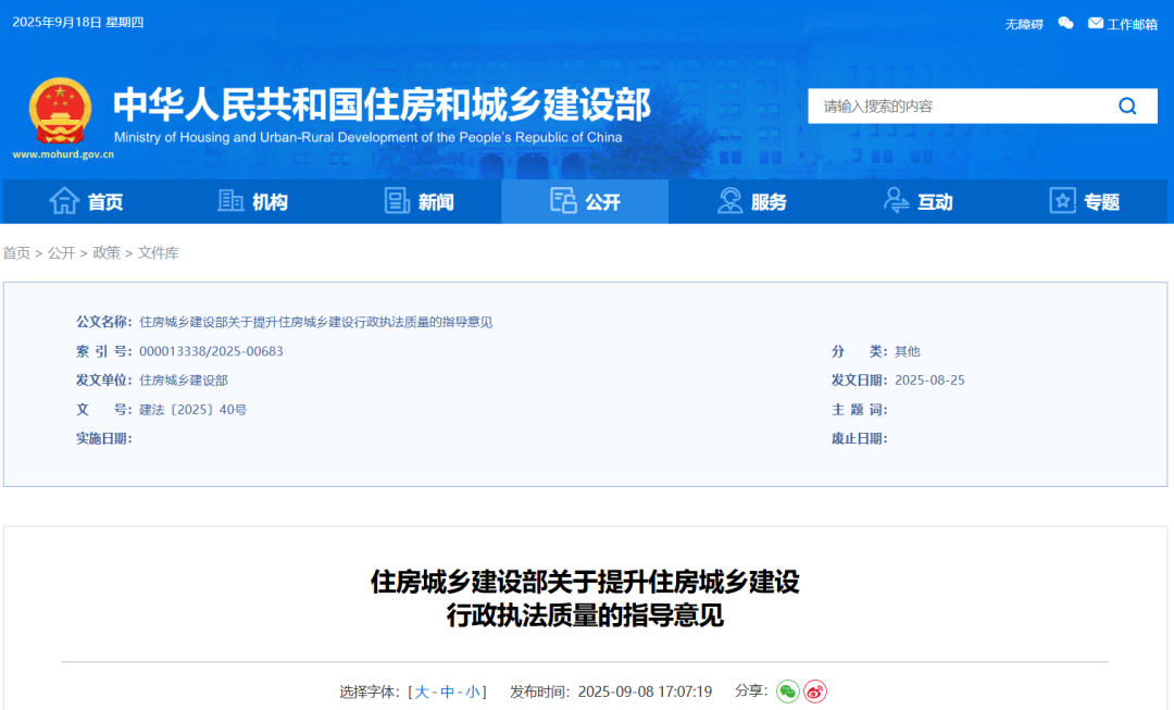住房城乡建设部关于提升住房城乡建设行政执法质量的指导意见