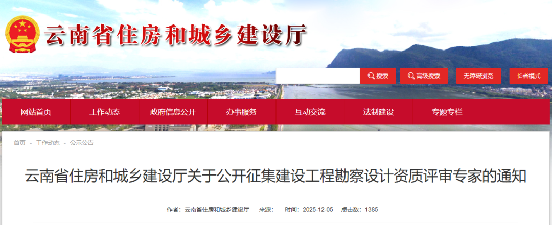 云南省住房和城乡建设厅关于公开征集建设工程勘察设计资质评审专家的通知