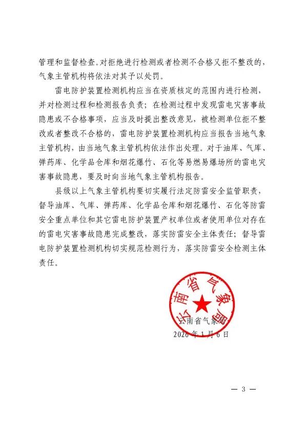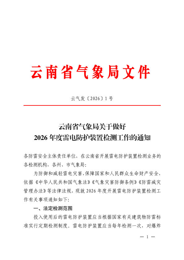 云南省气象局关于做好2026年度雷电防护装置检测工作的通知