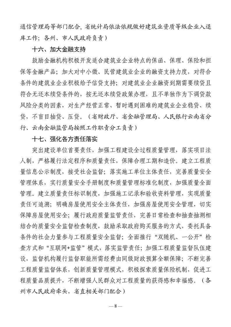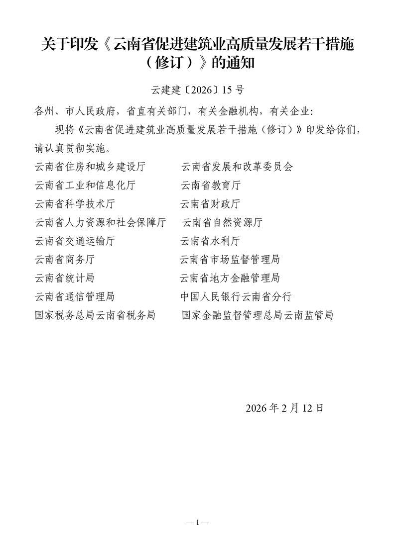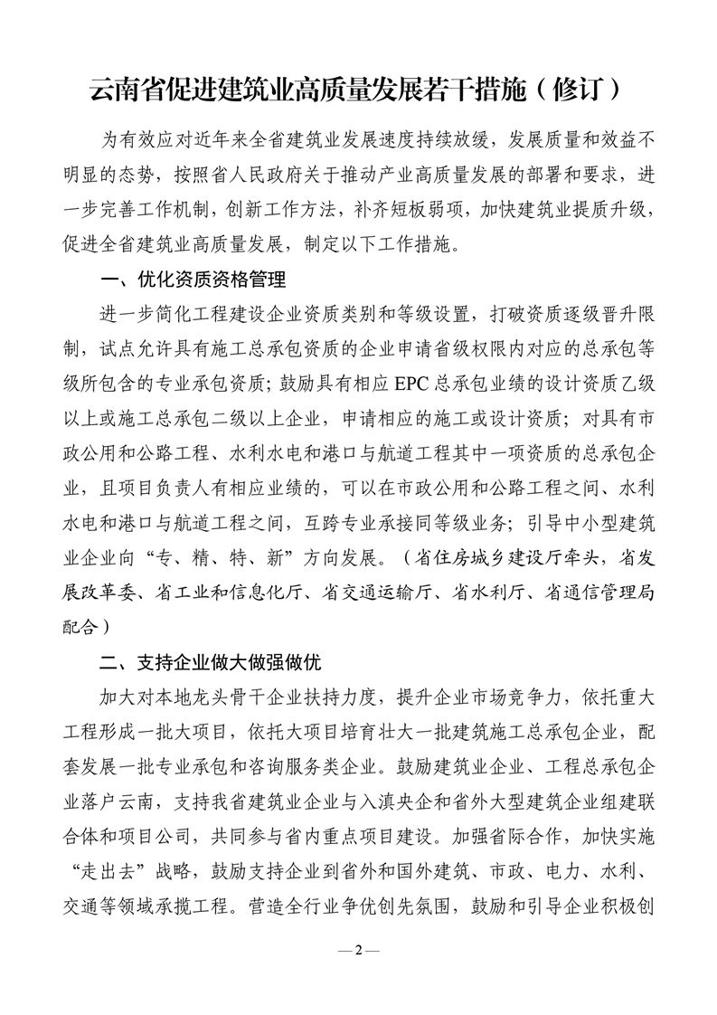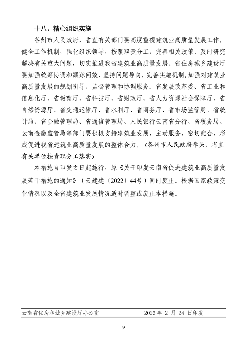 云南省住房和城乡建设厅等十八部门关于印发《云南省促进建筑业高质量发展若干措施 (修订)》的通知
